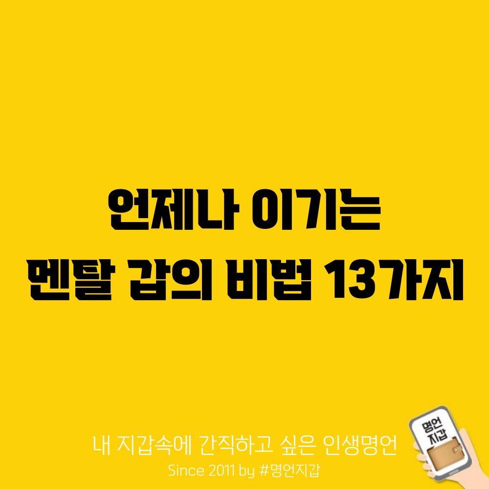 - 멘탈 갑은 실패했다고 포기해야 한다고 생각하지 않는다. 실패를 새로운 성장의 기회로 받아들인다.